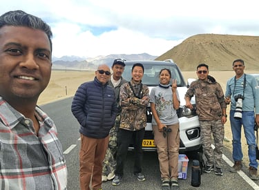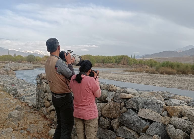 My guests from South India clicking the rare Ibisbill near Leh. Photograph all possible species during the whole tour across Ladakh.